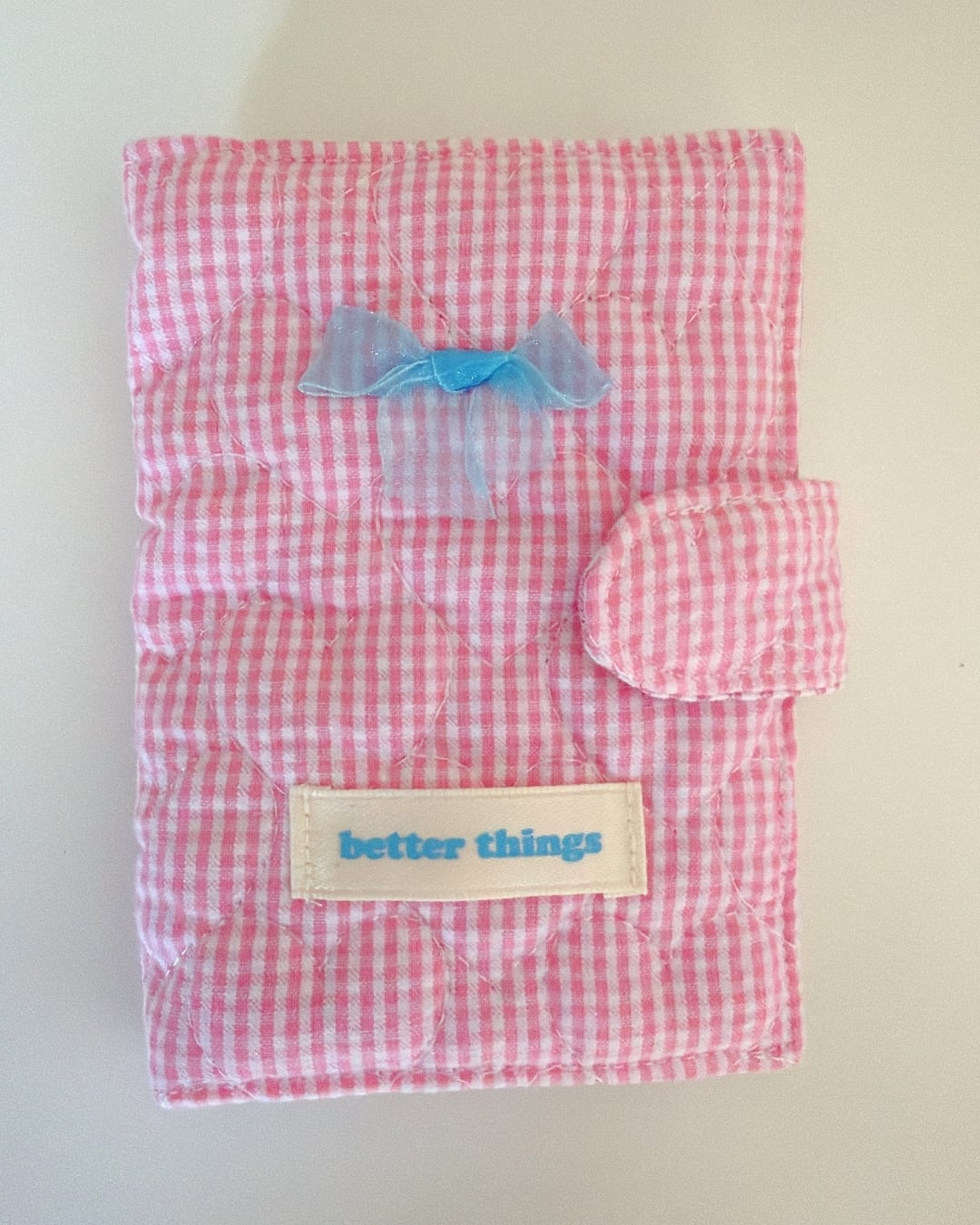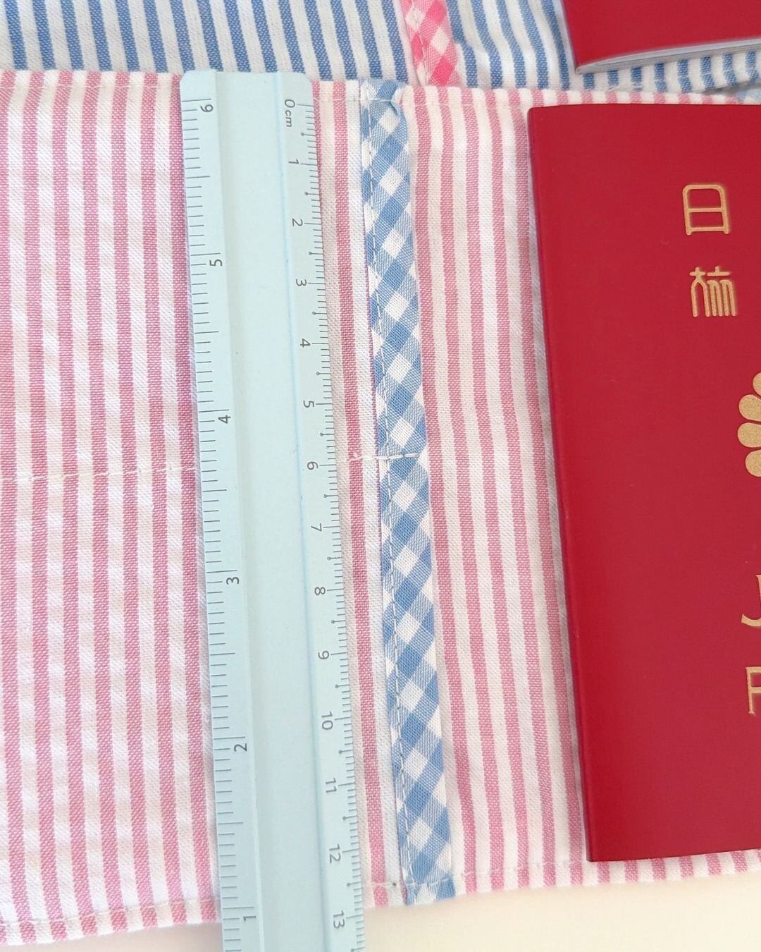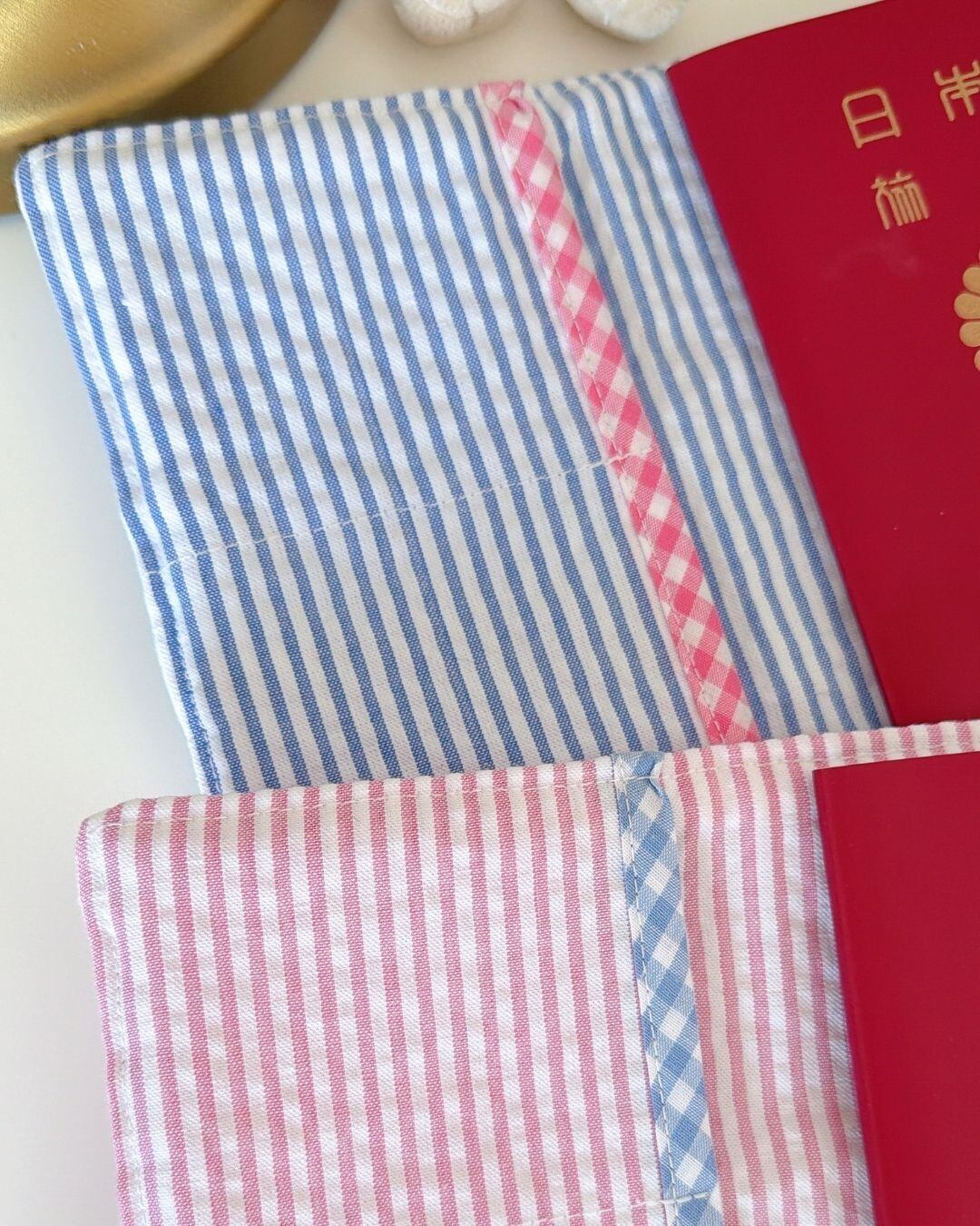 やわらかいキルティングのギンガム生地で仕立てた、ハンドメイドのパスポートケースです♡