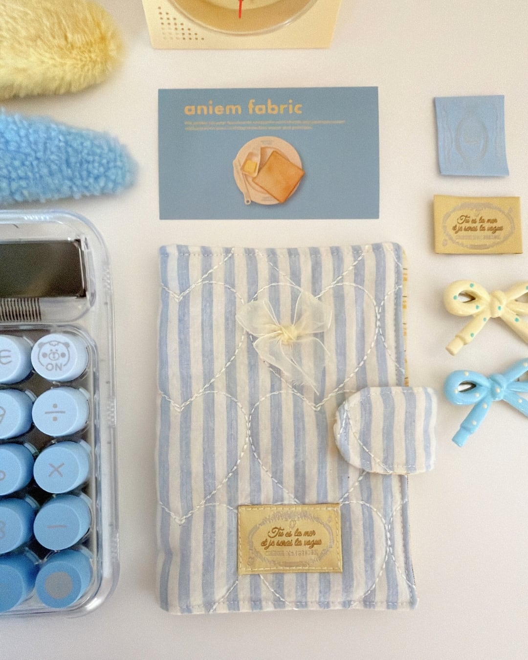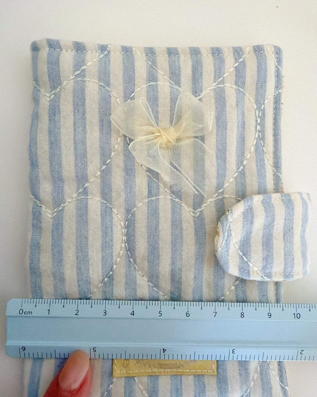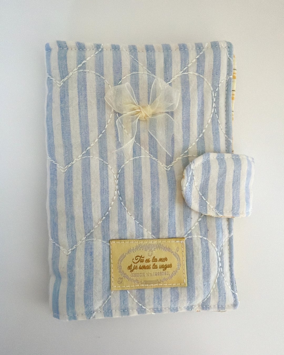 ふんわりキルティングとやさしいストライプ柄が魅力の、ハンドメイドのパスポートケースです。